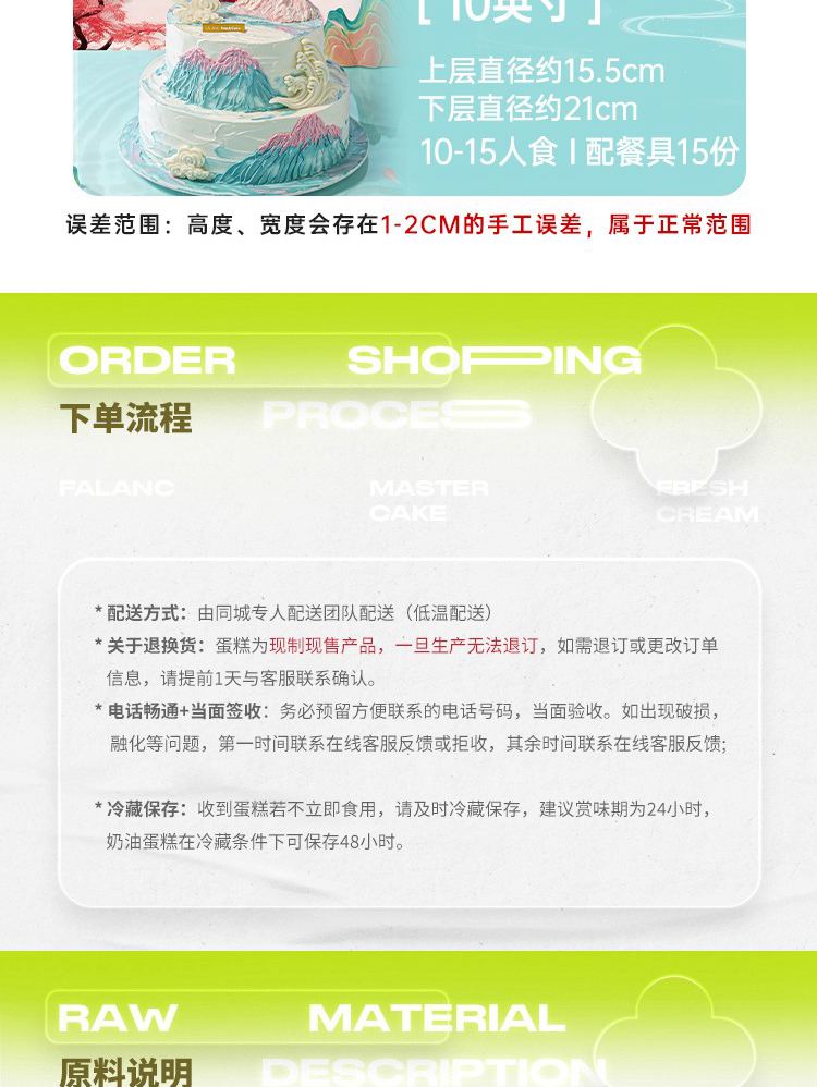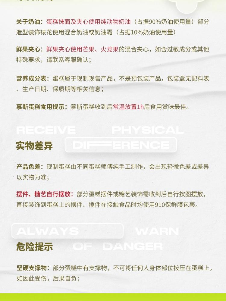 鲜花蛋糕都是配送当日新鲜材料制作而成,确保新鲜度,敬请放心订购!
