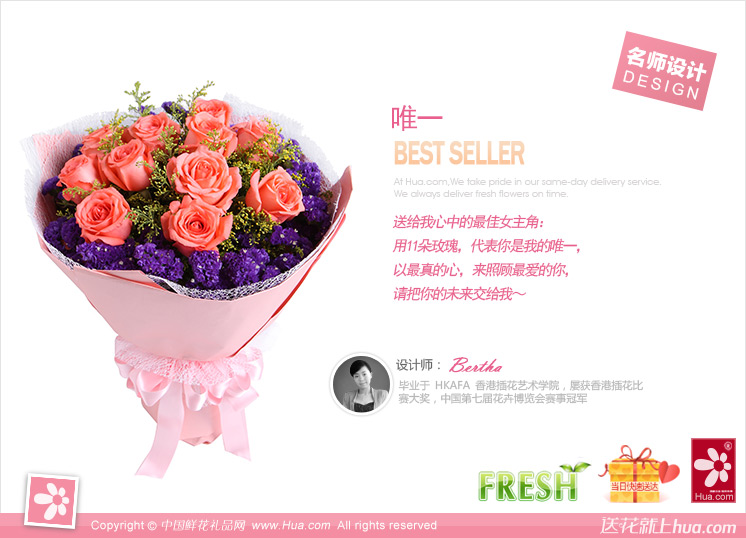 鲜花蛋糕都是配送当日新鲜材料制作而成,确保新鲜度,敬请放心订购!